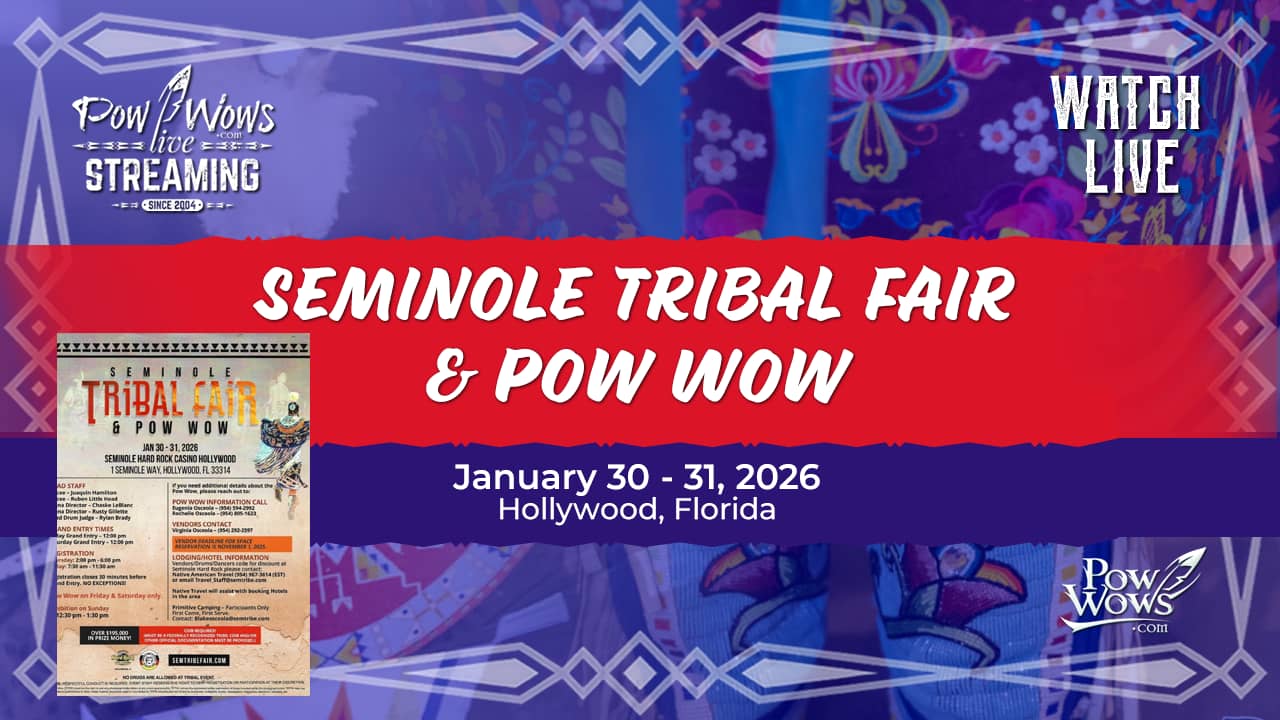 We’re LIVE today and tomorrow from the Seminole Tribal Fair & Pow Wow in Hollywood, Florida! 🎥🔥 We’ll be streaming Friday + Saturday (two-day pow wow!), so even if you can only jump in for a few minutes, you can still catch some special moments. 👉 Come watch with us: PowWows.com/live Quick heads up: If you were planning on the Big Mac Memorial Round Dance this weekend, that event has been postponed due to possible ice. The tribe wants to keep everyone safe, and we’ll share the new details as...
